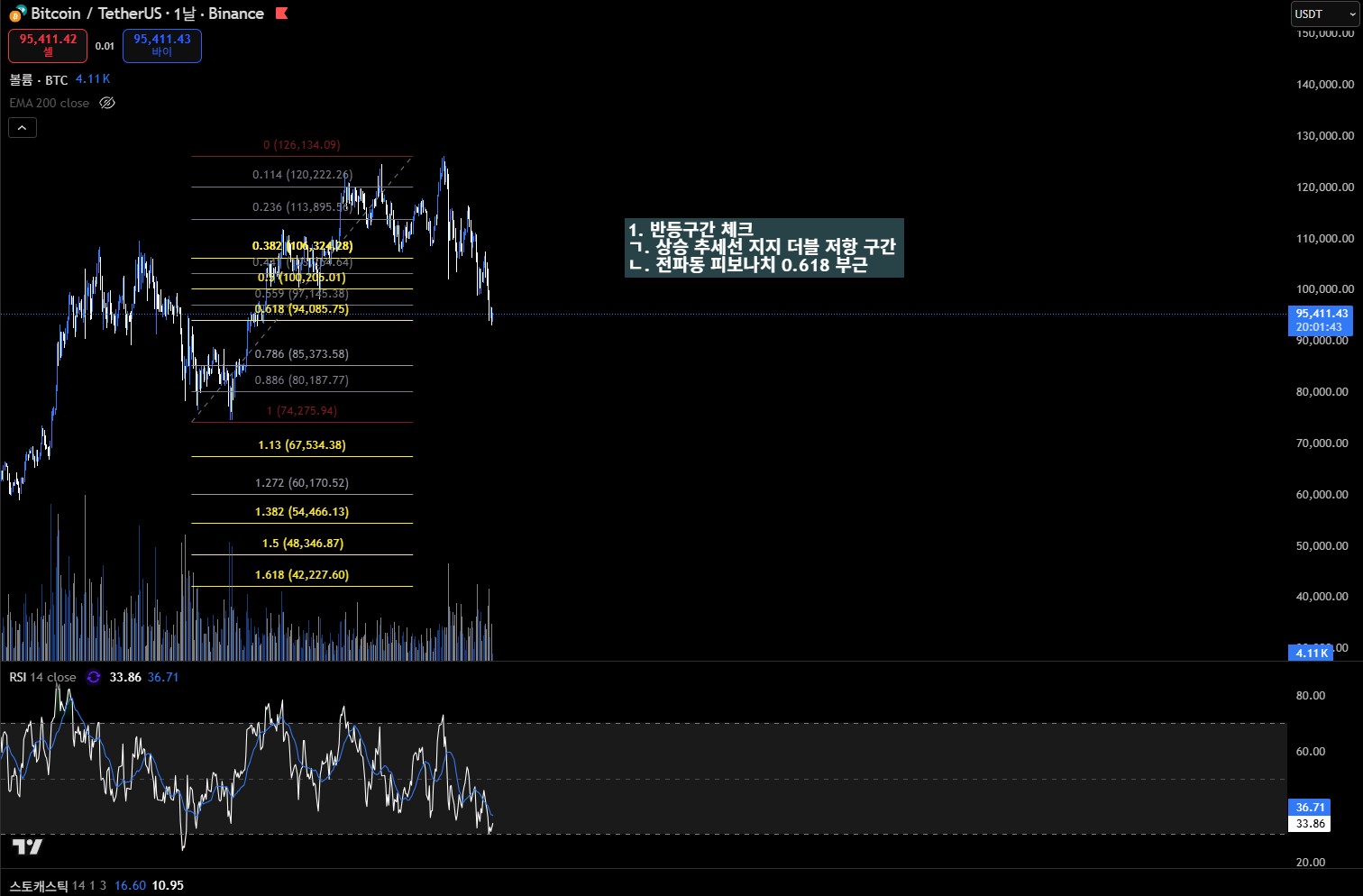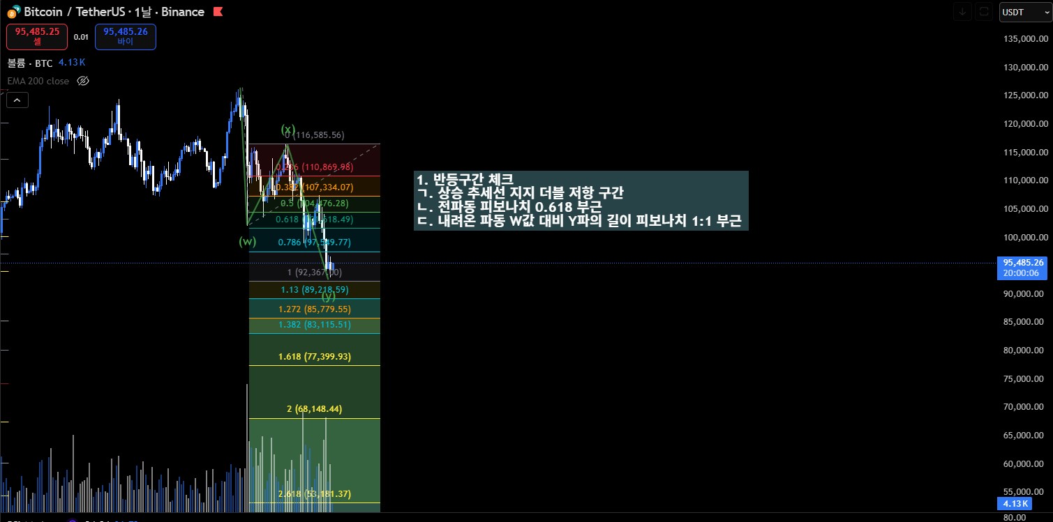비트코인이 큰 폭으로 하락한 뒤 반등 가능 구간을 찾기 위해 여러 기술적 근거를 하나씩 정리해봤습니다.